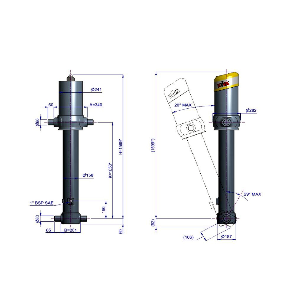 Maksymalne obciążenie siłownika (początek ruchu): 220 kN