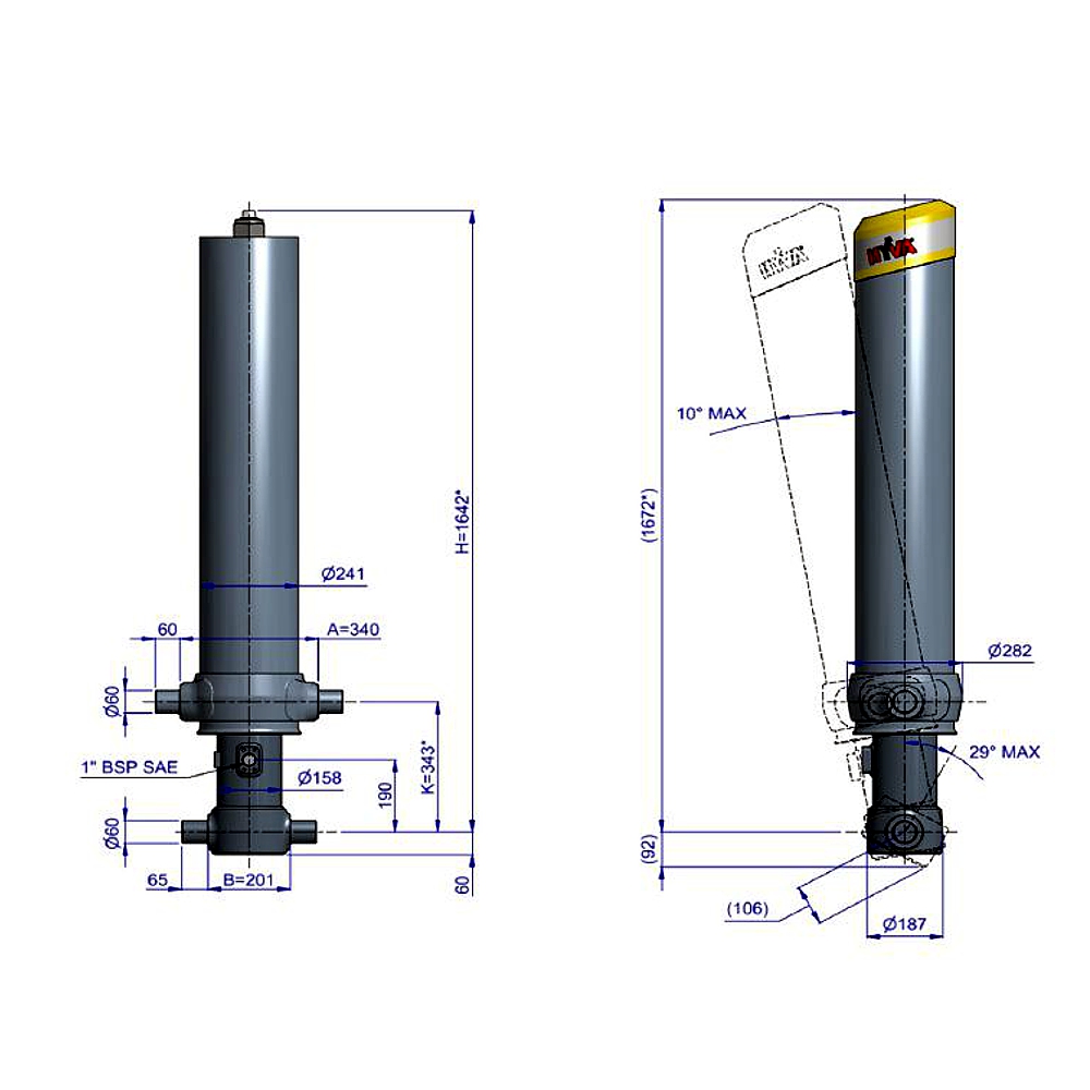 Maksymalne obciążenie siłownika (początek ruchu): 220 kN