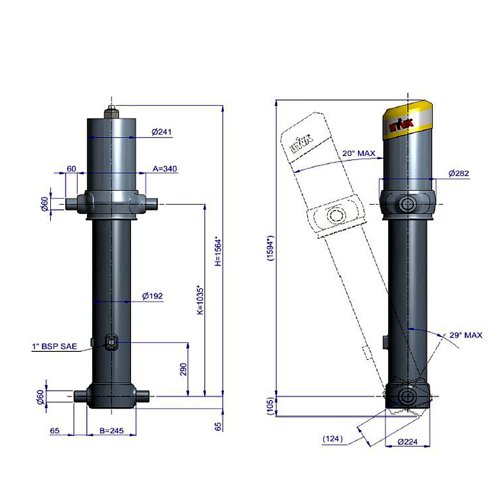 Maksymalne obciążenie siłownika (początek ruchu): 245 kN