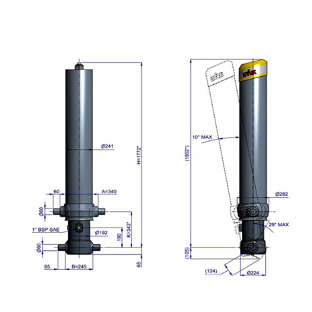 Maksymalne obciążenie siłownika (początek ruchu): 245 kN