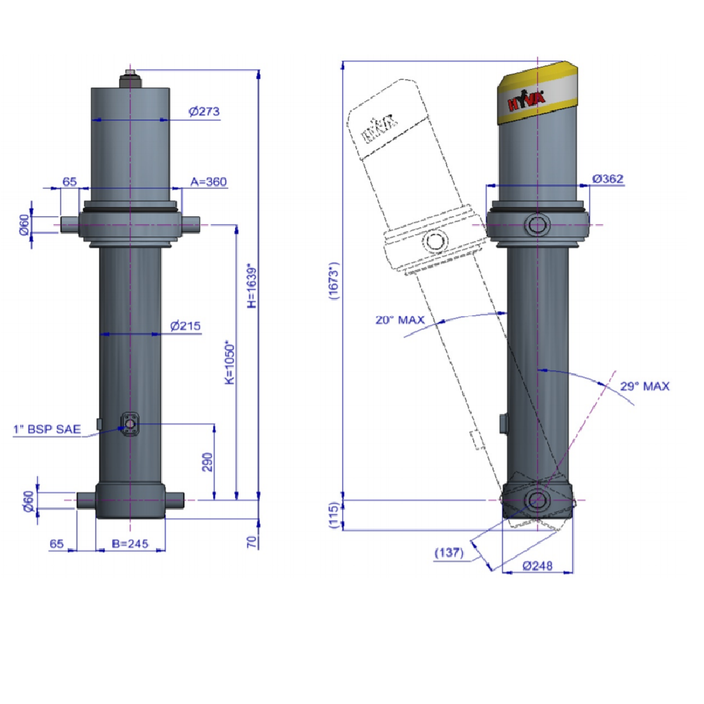 Maksymalne obciążenie siłownika (początek ruchu): 345 kN
