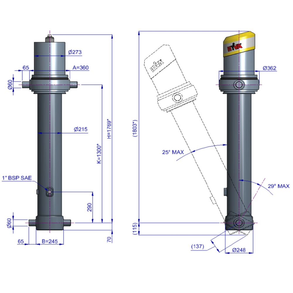 Maksymalne obciążenie siłownika (początek ruchu): 345 kN